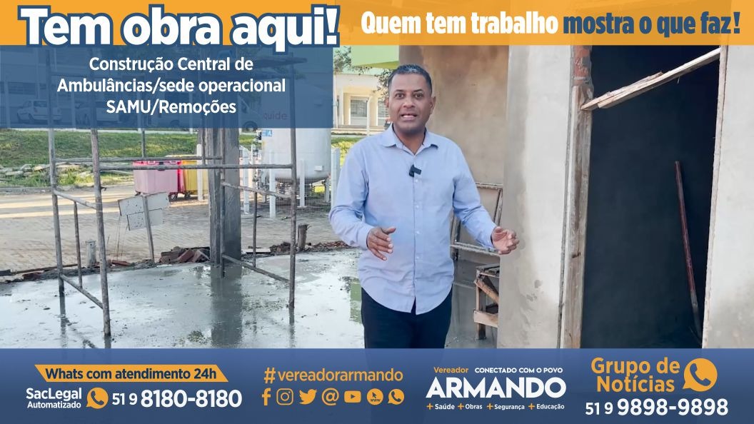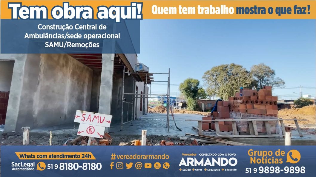 Em fase de acabamento final, as obras da Central de Ambulâncias de Viamão, ao lado da UPA 24h, na parada 36, foi planejada e iniciada pelo então prefeito, professor Bonatto, e está sendo concluída pelo prefeito, Engenheiro Nilton Magalhães, que atende a reivindicações do vereador Armando.