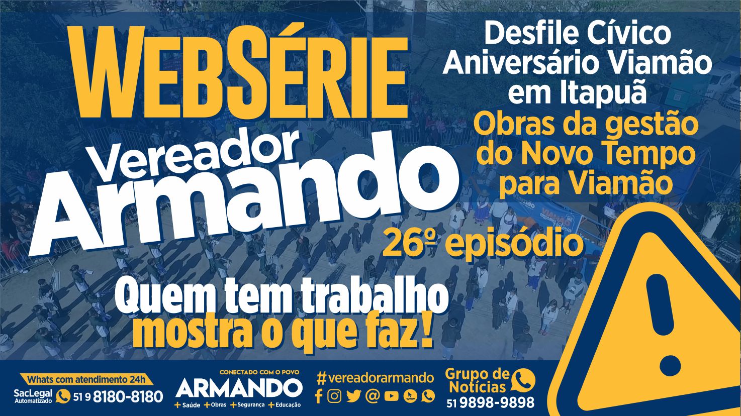 Asssista agora todas as séries dos episódios da Websérie Vereador Armando, das obras da gestão do Novo Tempo para Viamão.
